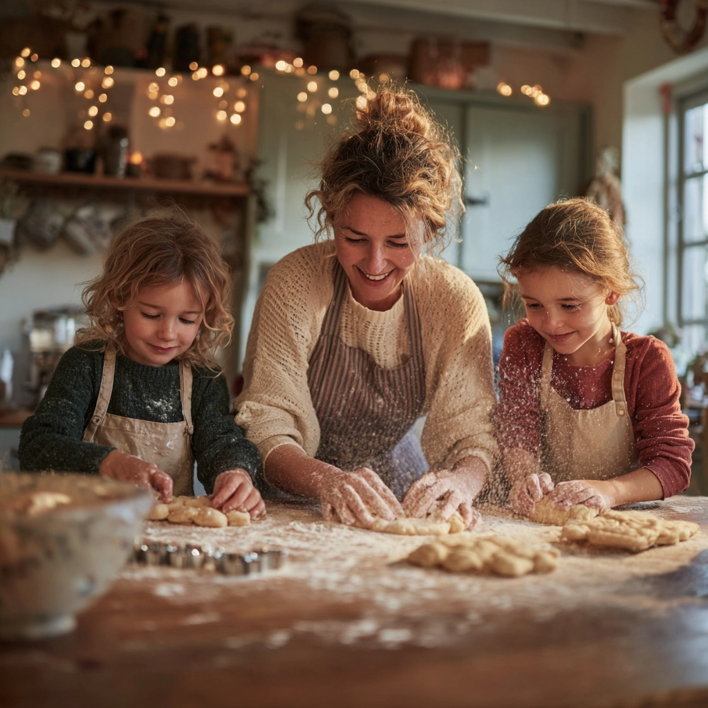 De geur van boter en suiker hangt in de lucht. Op het aanrecht ligt een wolk van bloem, er rolt een ei weg en kleine vingers proberen het…