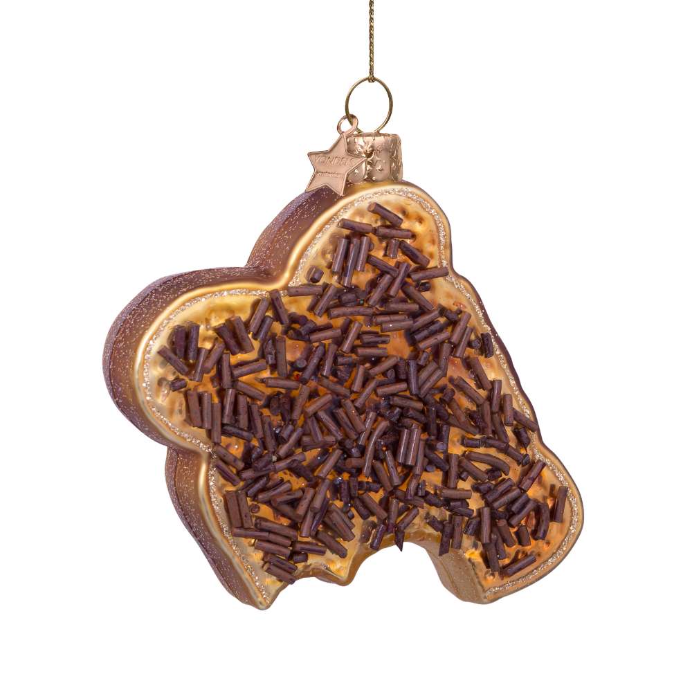 Nederlands glorie in je boom: een boterham met hagelslag! Dit iconische ontbijt wordt in dit ornament tot leven gebracht. Perfect voor liefhebbers van Nederlandse tradities en iedereen die zijn kerstboom een uniek tintje wil geven. Bonuspunten als je hem combineert met andere food-ornamenten!