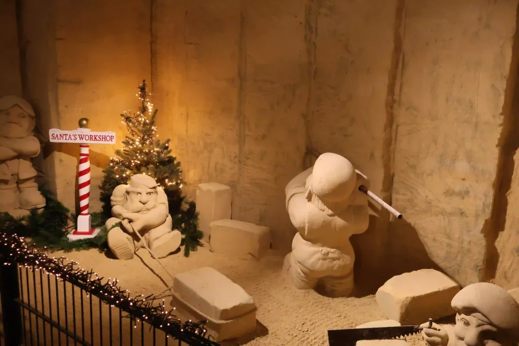 Wat ons ook leuk vond waren de interactieve elementen. Bij een tafel kon je zandtekeningen maken, leuk voor jong en oud. En in Santa’s workshop kon je met een mergelblok aan de slag om er een klein kunstwerkje van te maken. Dit soort activiteiten maken het bezoek persoonlijk en geven je een herinnering om mee naar huis te nemen.