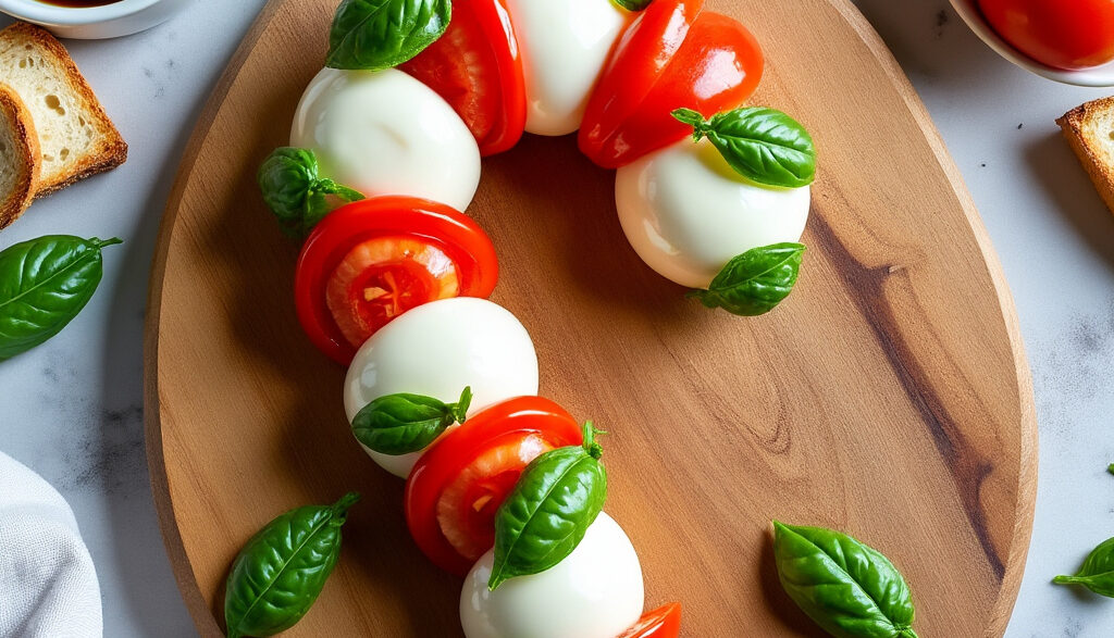 Deze eenvoudige Caprese Candy Cane borrelplank is perfect voor een snelle en feestelijke snack tijdens de feestdagen. Met slechts drie ingrediënten – mozzarella, tomaten en verse basilicum – tover je een klassieke kerstlook op tafel. De frisse kleuren en smaken maken dit gerecht een lichte en smakelijke toevoeging aan elke borreltafel. Serveer met wat stokbrood en balsamico glazuur voor een complete, elegante hap die iedereen zal verrassen.