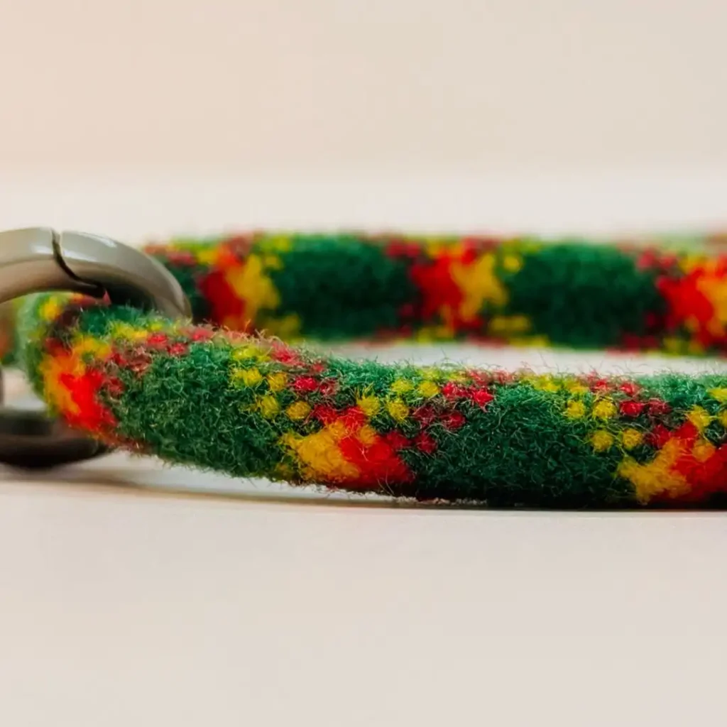 De wollen band is echt comfortabel. Ik was bang dat het zou schuren of irritant zou aanvoelen, maar zelfs na een hele dag shoppen voelde het prima. Het materiaal is zacht en de vaste lengte zorgt ervoor dat je telefoon altijd op de juiste hoogte hangt, net boven je taille. Geen gedoe met afstellen.