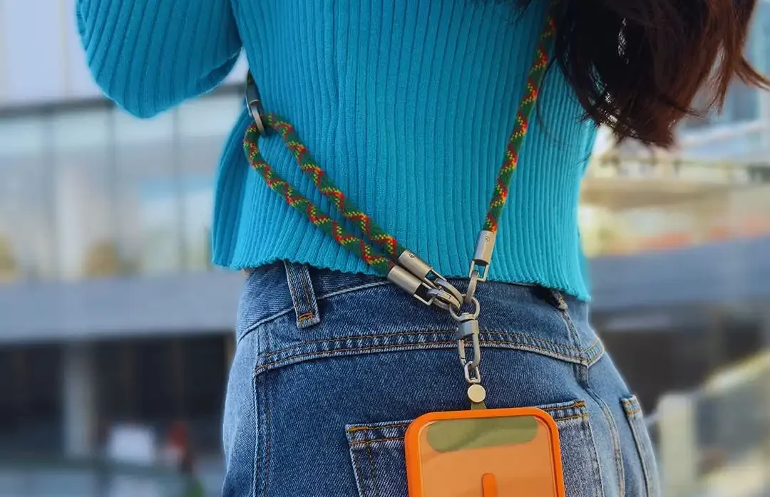De wollen band is echt comfortabel. Ik was bang dat het zou schuren of irritant zou aanvoelen, maar zelfs na een hele dag shoppen voelde het prima. Het materiaal is zacht en de vaste lengte zorgt ervoor dat je telefoon altijd op de juiste hoogte hangt, net boven je taille. Geen gedoe met afstellen.