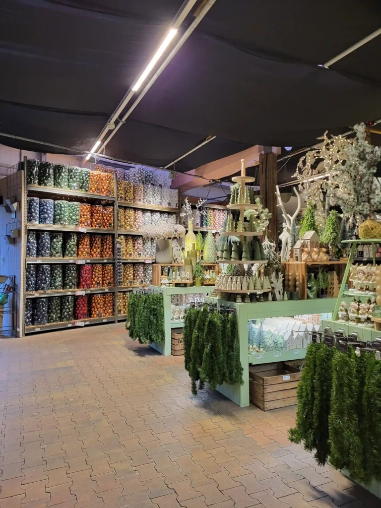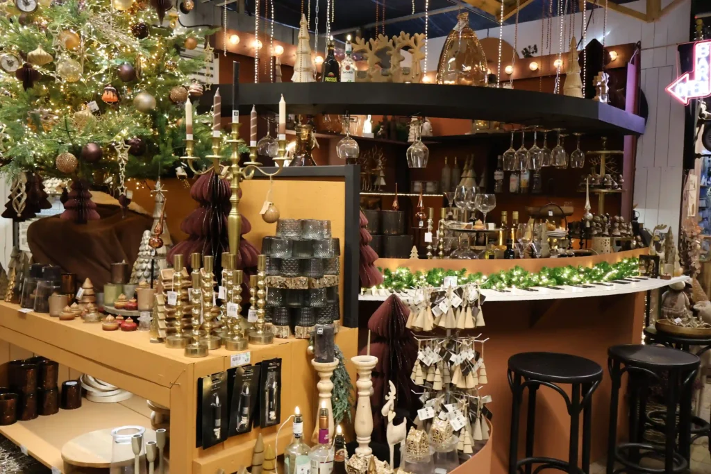 En dan moeten we het even hebben over die ene wand die werkelijk elke centimeter bedekt was met kersthangers. Niet zomaar hangers, maar honderden verschillende designs in vilt en textiel: uilen, ganzen, vogeltjes, eekhoorns, schaapjes, en zelfs complete kerstmannetjes. Van neutraal beige tot felrood, van minimalistisch tot uitbundig. Als je op zoek bent naar die ene unieke hanger voor in je boom, vind je hem hier gegarandeerd. Het was bijna overweldigend hoeveel keuze er was!