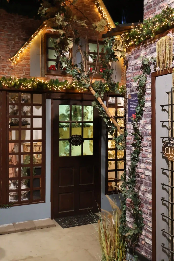 Op de bovenverdieping werd het helemaal bijzonder met meerdere nagebouwde huisjes compleet met bakstenen muren, vintage stijl, verlichte dennenslingers en gezellige deuren met kransen. Wat dit display zo speciaal maakt? Je kunt door de ramen naar binnen kijken en ziet authentiek ingerichte interieurs met antieke meubeltjes en vintage accessoires. Leuk achtergrondje: voor deze huisjes is Intratuin duurzaam te werk gegaan door meerdere kringloopwinkels af te struinen voor de unieke samenstelling. Zo’n decorstuk dat je terugbrengt naar vroeger en laat zien hoe je met tweedehands spullen prachtige sfeer kunt maken.