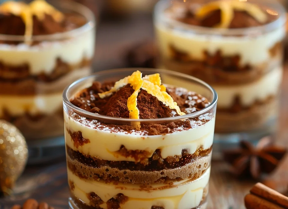 - Serveer de glaasjes met een kaneelstokje of een dun schijfje sinaasappel erbovenop.