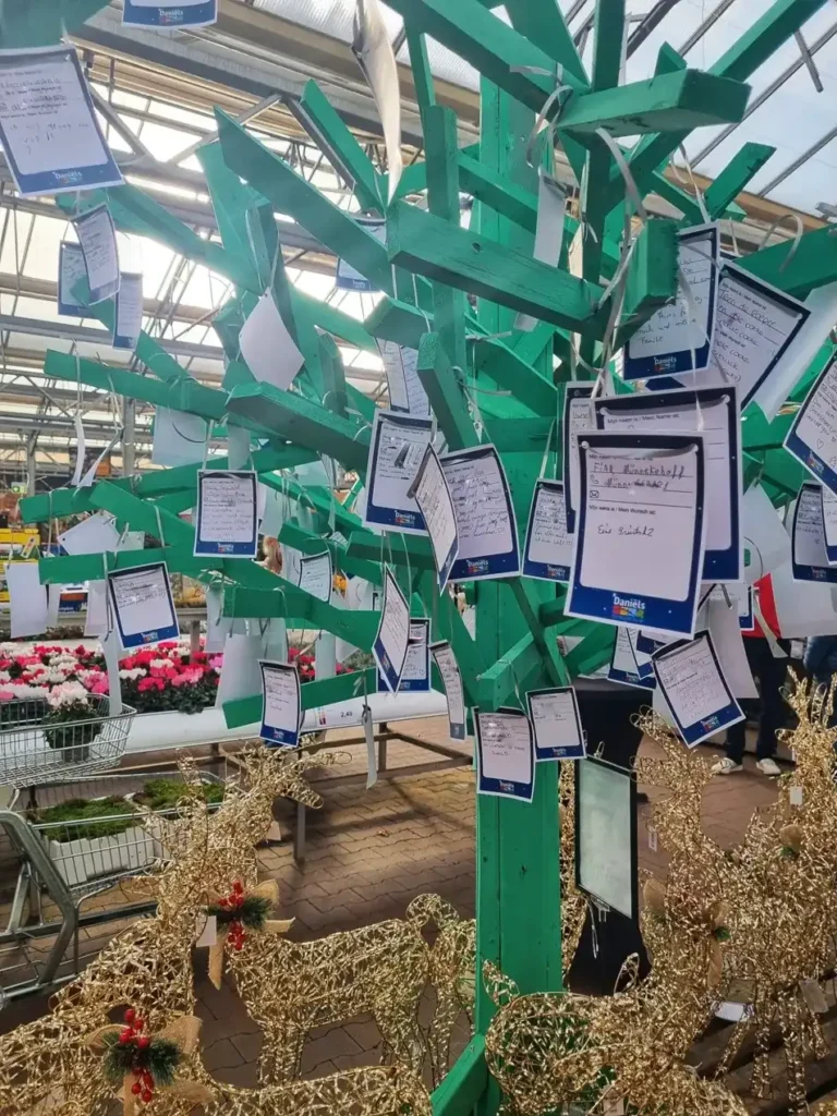 Tussen al het moois staat ook een bijzondere wensboom. Het concept is simpel maar leuk: je schrijft een kerstwens op een kaartje en hangt die in de boom. Of het nu gaat om iets voor jezelf, een verrassing voor iemand anders, of gewoon een mooie gedachte, het maakt de kerstsfeer net iets persoonlijker. Het is een kleine toevoeging, maar het zorgt ervoor dat je als bezoeker ook écht deel wordt van de kerstwereld die ze hebben gecreëerd.